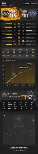 第四节,步行者在开局阶段手感不佳,双方分差一度缩小至14分。然而,随着比赛的深入,步行者逐渐回暖,通过强势进攻将优势扩大到26分。尽管雷霆在小节后段努力追分,但未能扭转局面。本节比赛中,步行者的怀斯曼也有所斩获,取得10分。最终,步行者以116-101赢下比赛。